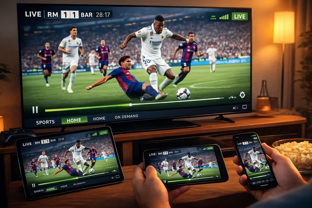 IPTV funktioniert auf nahezu allen modernen Geräten. Smart TVs, Android-Boxen, Fire TV Sticks oder Smartphones sind kompatibel. Beliebte Apps wie IPTV Smarters oder TiviMate unterstützen DAZN-Streams problemlos. Dadurch bleibt man flexibel und unabhängig vom Gerät.
